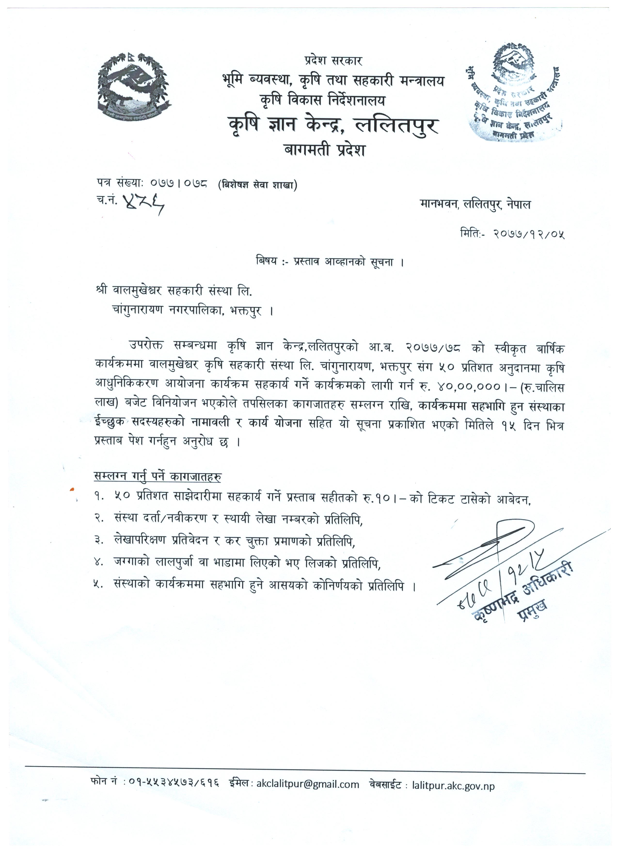 बालमुकेश्वर कृषि सहकारी संस्था लीः प्रस्ताव आह्वानको सुचना 2077-12-05 Closed !!!