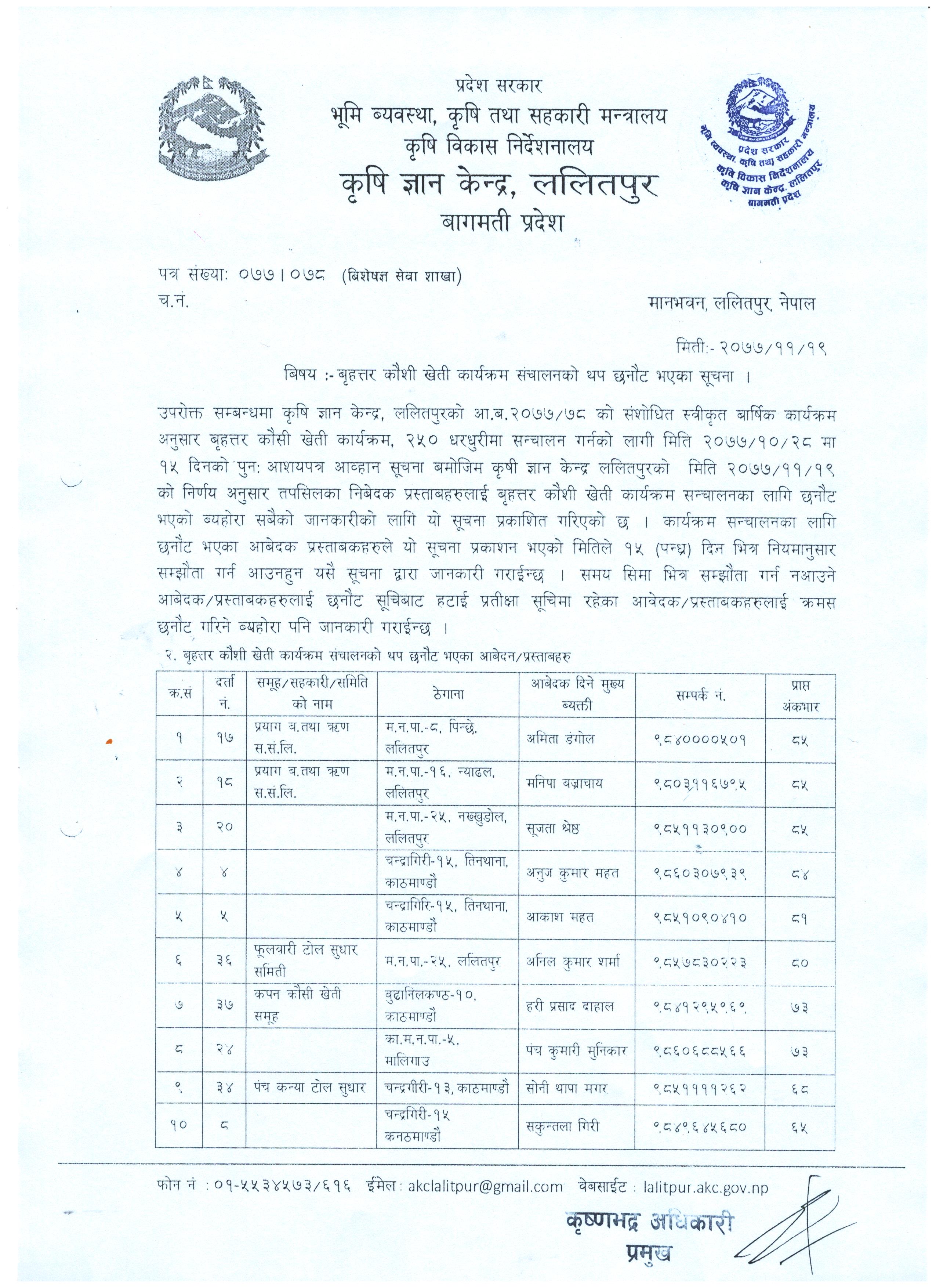 बृहत्तर कौसी खेती कार्यक्रम संचालको लागी थप छनोट भएको सम्बन्धमा 2077-11-21 Closed !!!