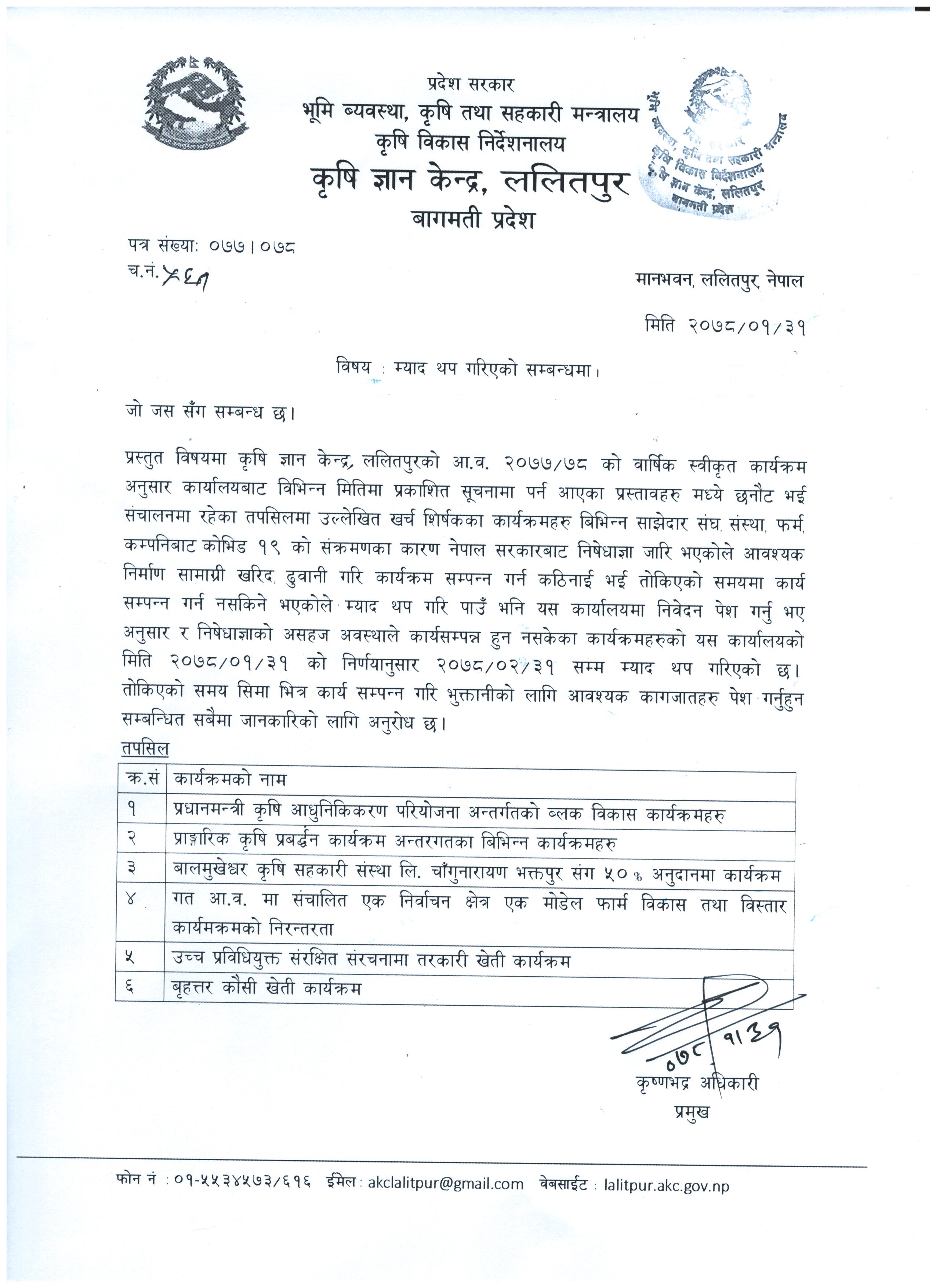 म्याद थप गरिएको सम्बन्द्यमा 2078-02-02 Closed !!!