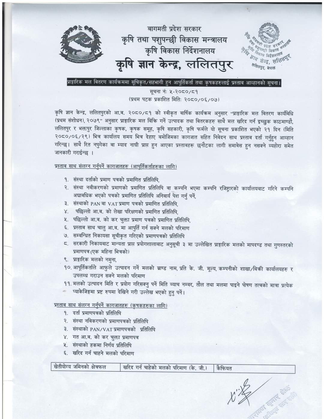 अनुदानमा प्राङ्गारिक मल बितरण सम्बन्धि प्रस्ताव आह्वानको सूचना 2080-06-07 Closed !!!