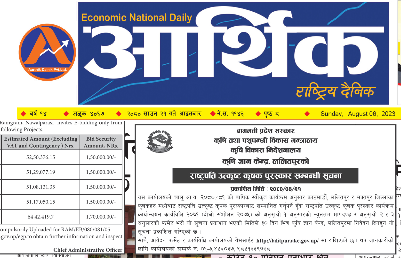 राष्ट्रपति उत्कृष्ठ कृषक पुरस्कार कार्यक्रमको प्रस्ताव आव्हानको सूचना । 2080-04-21 Closed !!!